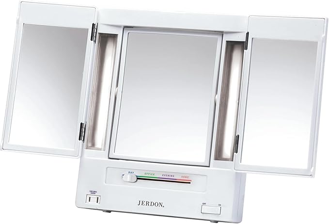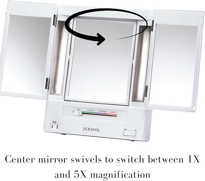 Tri-Fold Two-Sided Makeup Mirror with Lights - Vanity Mirror with 5X M