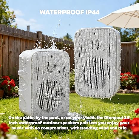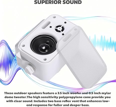 • 3.5 inch Outdoor Speakers Wired, Waterproof Wall Mount Speakers, Ideal for Patio, Poolside, Garage, Pair, White